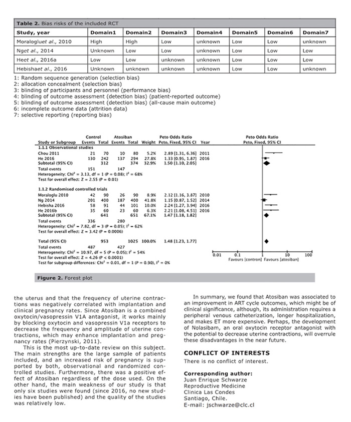 結論:阿托西班似乎可提高接受胚胎移植婦女的臨床妊娠率。