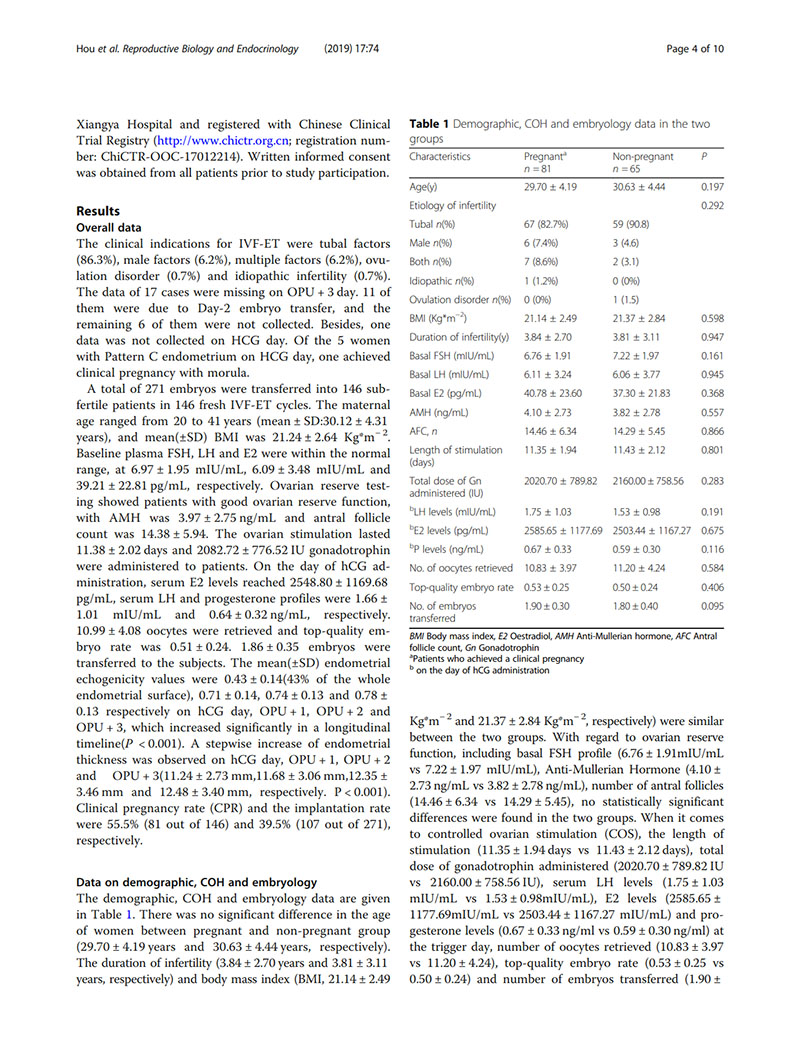 hCG觸發的子宮內膜回聲改變對預測IVF妊娠結局的價值:前瞻性隊列研究